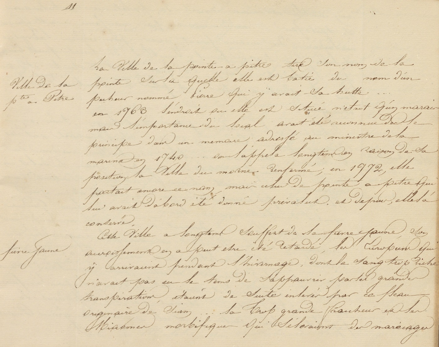 Ce carnet de 52 pages intitulé Voyage à la Guadeloupe est un récit manuscrit du naturaliste Adulphe Delegorgue, rédigé en 1832. Il contient une description de la Guadeloupe plus de quinze ans avant l’abolition de l’esclavage, ainsi qu’une partie consacrée à la culture de la canne et l’histoire naturelle de l’île. On peut lire notamment une description pittoresque de Pointe-à-Pitre : « Les rues de la Pointe-à-pitre sont larges, tirées au cordeau, pavées comme en Europe. La plupart ont des trottoirs. Son port est bordé de belles maisons dont le rez-de-chaussée sert de magasins pour le sel et les cargaisons. On y voit beaucoup d’activité, surtout dans les temps prospères ». Il se termine par la transcription transcription maladroite de chansons créoles.