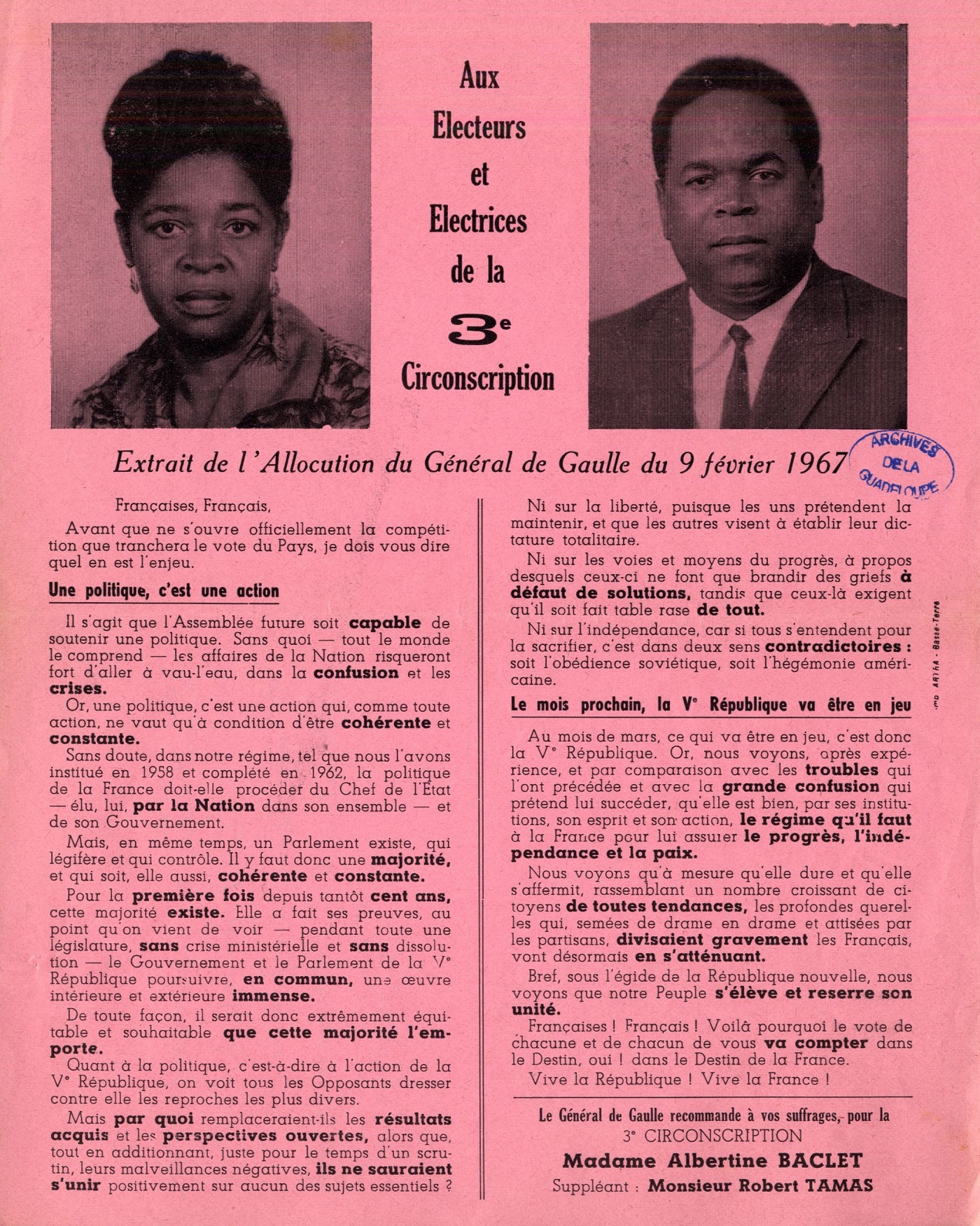 Arch. dép. Guadeloupe, tracts politiques de la 3e circonscription,  1967, 3 W.