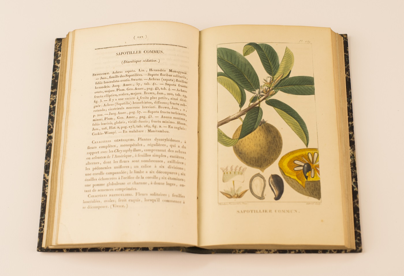 Chaque plante, classée par type, fait l’objet d’une étude détaillée à la fois morphologique et pathologique. On découvre que le « fromager pétandre » porte un autre nom, celui de « cotonnier mapou » et qu’il possède des propriétés diurétiques adoucissantes ou que le « sapotiller commun » recèle des vertus diurétiques sédatives. Une mine d’informations à découvrir dans notre salle de lecture et bientôt en ligne sur notre site internet.