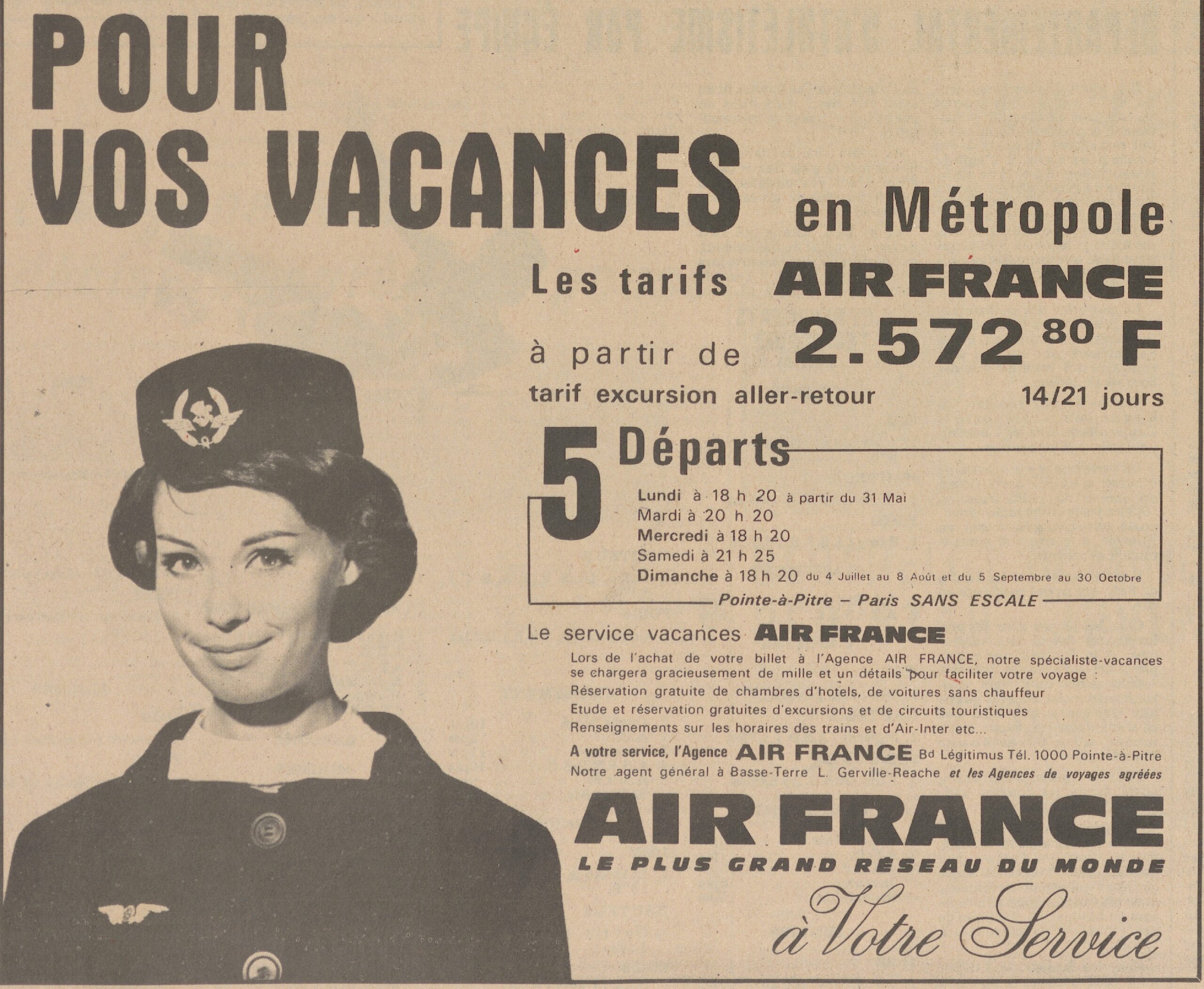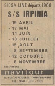 Publicités sur les horaires des paquebots transatlantiques parues dans le journal France-Antilles, 1965, 1967. Arch. dép. Guadeloupe, PG 1002.
